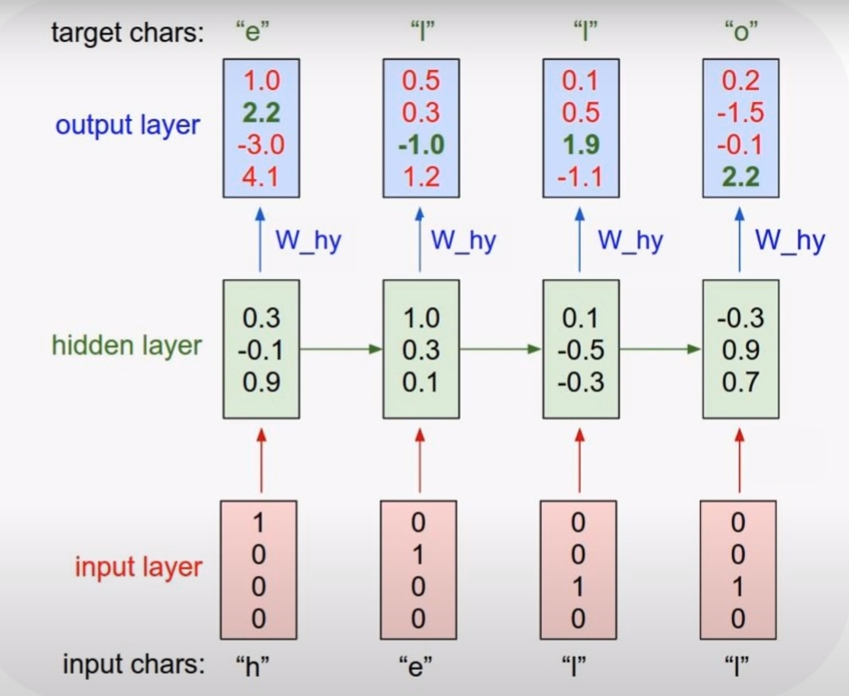 $$h_t = tanh(W_{hh}h_{t-1}+W_{xh}x_t), y_t=W_{hy}\cdot h_t$$