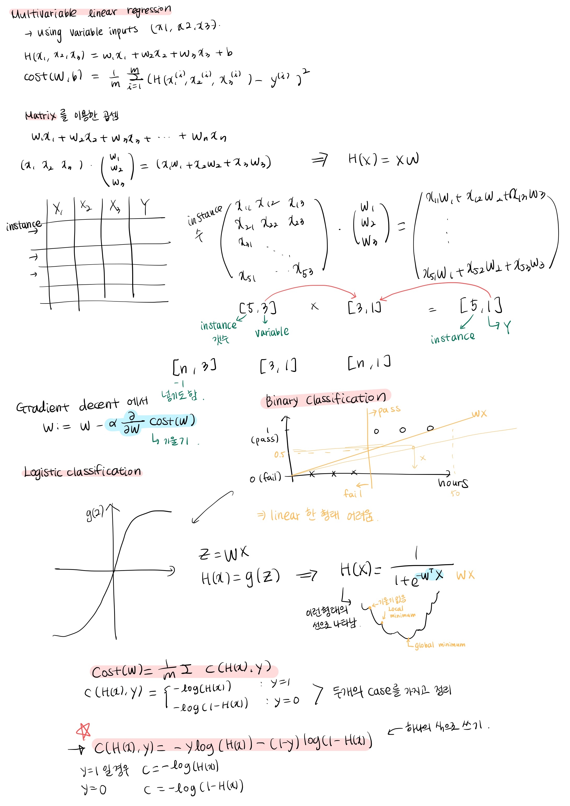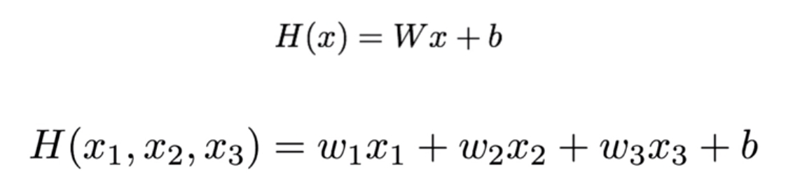 TensorFlow์์ ์ฌ์ฉํ๋ ๊ฒฝ์ฐ H(X) = XW ์์ผ๋ก ์จ์ฃผ๋ ๊ฒ์ด matrix ๊ณ์ฐ ๊ตฌํ์ด ๊ฐ๋ฅํ๋ฏ๋ก ์ต๋ํ ์ด ํ๊ธฐ๋ฒ์ผ๋ก ์ฌ์ฉํ๊ธฐ